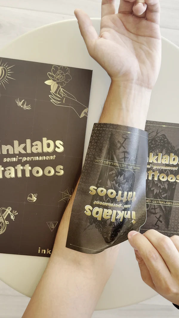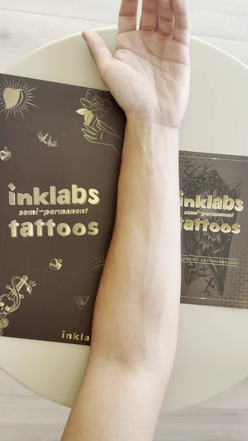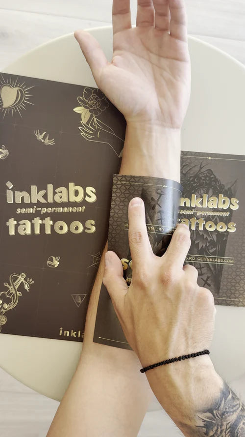 Aplică-ți tatuajul Inklabs în trei pași simpli: Pregătește, Așează, Dezlipește!